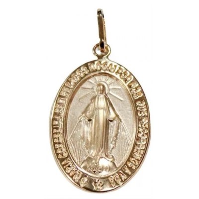 18k Gold Pendant Our Lady of Graces Miraculous Gold Color Medal