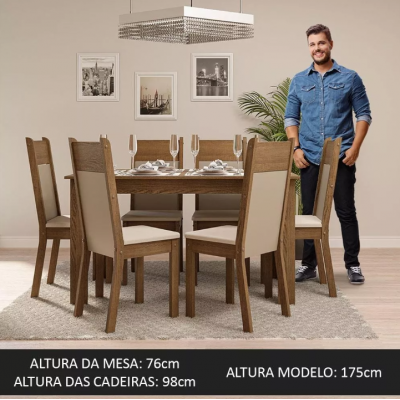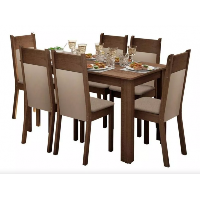 Title page > Furniture > Furniture > Dining Room Madesa Jaíne Table Wooden Top 6 Chairs Rustic Crema Pearl 044905ZXTPER