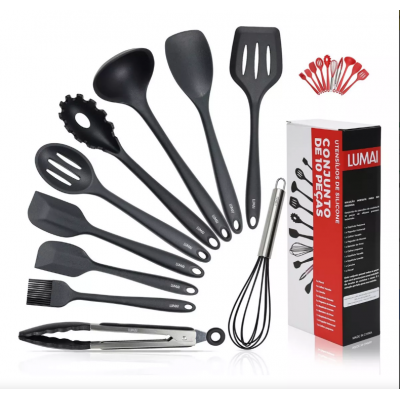 Lumai utensil silicone premium set set 10 kitchen utensils color black spoof spoons