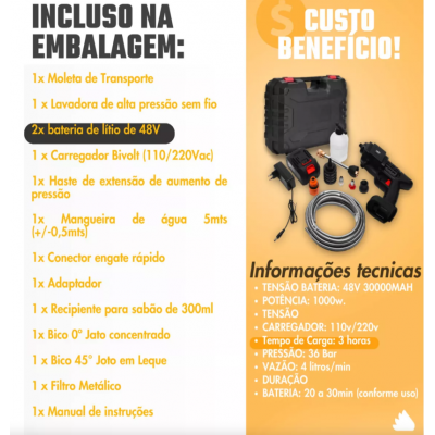 For the best performance of your portable jet washer, all product is sent with a little water inside the engine, thus avoiding the burning of the equipment. For the best performance, connect it directly to the tap during the first use to remove air from the machine. After that, just use it at the bucket normally!