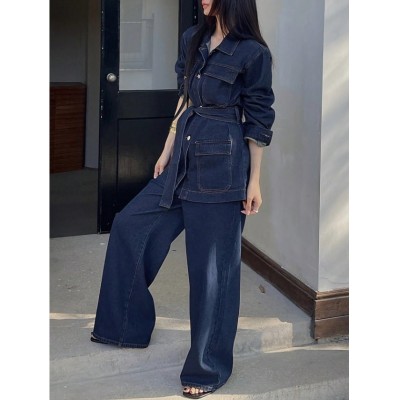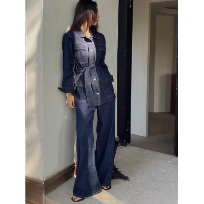 Title page > Dazy Tall Tall Women's Denim Jacket With Collar And Belt, And Matching Denim Pants, Casual Suit