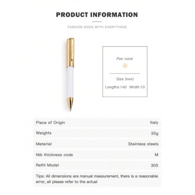 Title page > Versace Calipso Ballpoint Pen Whie Gold Ball Point Blue Ink Pen Luxury Designer With Medusa And Gree
