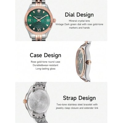 Title page > Versace Two-Tone Stainless Steel Bracelet Quartz Watch For Women Quartz Analog Watch With Rose Gold-
