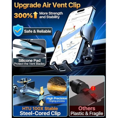 [Boa escolha: suporte de carro de alta qualidade confiável por mais de 2.500.000 usuários com mais de 15 anos] O suporte de telefone para carro Htu 2024 é certificado por todas as autoridades (Certificado internacional à prova de choque de grau militar, CP65, REACH, RoHS), com base no design exclusivo do Grandmaster (patente EUIPO), materiais duráveis e saudáveis de mais de 4.000 materiais e Indústria-Lei Testes de segurança ading (teste mensal de 5.000 + abertura/fechada; 10.000+ resistência à vibração; testes de estrada robusta de 100.000 km; teste de laboratório de -40.0 °C a 95.0 °C)